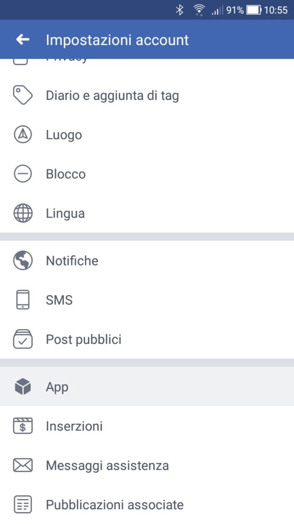 Se preferisci una soluzione “drastica” ma non vuoi rinunciare ad avere un account Facebook, puoi disabilitare del tutto la possibilità di accedere alle app di Facebook.