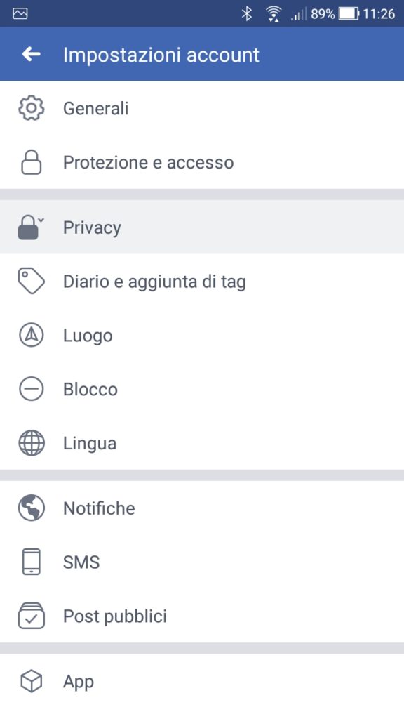 2. Le impostazioni della privacy di Facebook
