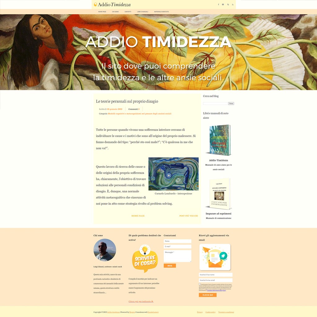 Personalizzazione della grafica del sito Addio Timidezza, ospitato sulla piattaforma Blogspot