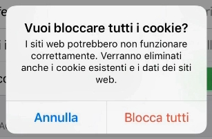 Attenzione: disabilitare i cookie può portare a malfunzionamenti dei siti che visiti! Alcuni cookie sono necessari per la navigazione, per questo a volte potrebbero impedirti di navigare regolarmente in alcune pagine.